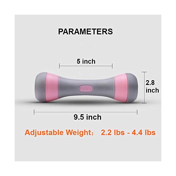 ❷【WEIGHT SETTING】: A Single dumbbell without weight blocks (really helpful for use with 4 foams to prevent shaking) weighs about 2.2 lbs. A single dumbbell is added with 2 weight blocks (really helpful for use with 2 foams to prevent shaking) and weighs about 3.3 lbs.A single dumbbell with four weight blocks weighs about 4.4 lbs.