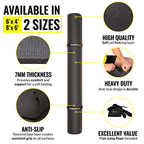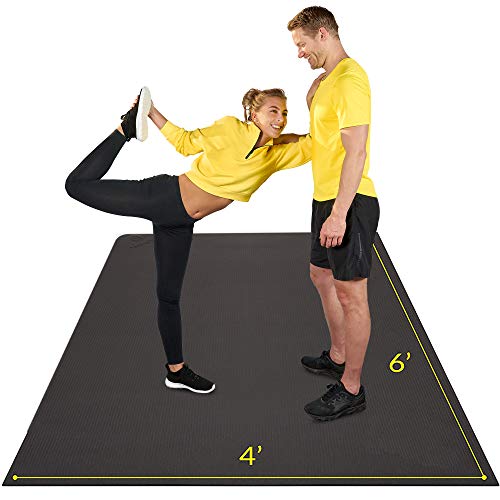 - Your Home Gym Anywhere – Easy to store, easy to use, and twice the size of a standard yoga mat, this 6′ x 4′ gym mat works great on all floor surfaces including tile, concrete and carpet in your living room, basement, garage and outdoors.