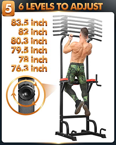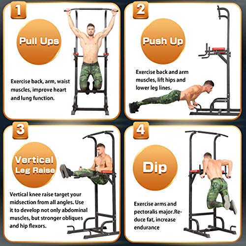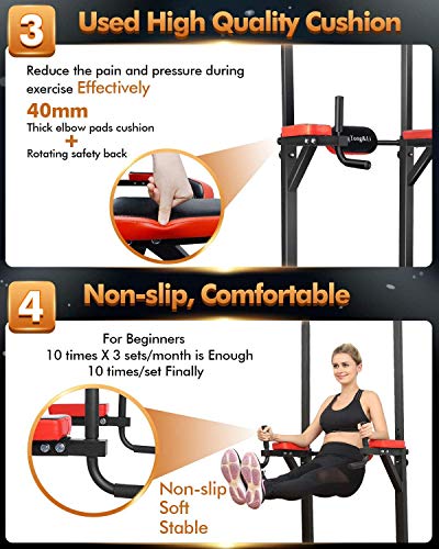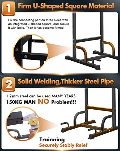 STURDY AND DURABLE: The solid power tower is made of thickened heavy duty steel construction with high-density foam rubber grips, armrests and antiskid screws. The square tube thicker and wider, which can holds up to 330lbs.