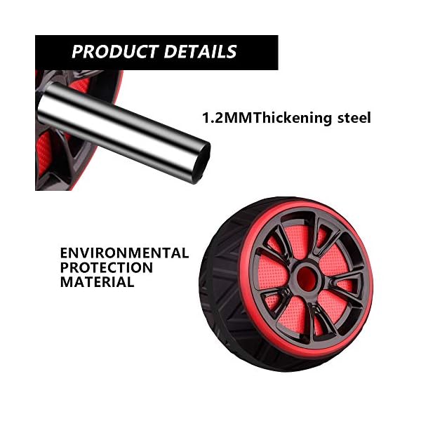 PREMIUM QUALITY: Train with one of the most effective pieces of home exercise equipment. It is made of strong, durable material to ensure it withstands even the most intense workout sessions. The ab wheel is made of strong stainless steel, non-slip rubber and durable PVC. The abs roller handles are made of comfortable EVA foam padding & knee pad ensure safety and comfort.