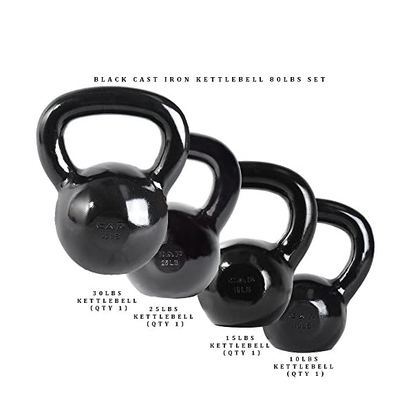 80 lb kettlebell set includes – 10, 15, 25 & 30-pound powder coated cast iron Kettlebells