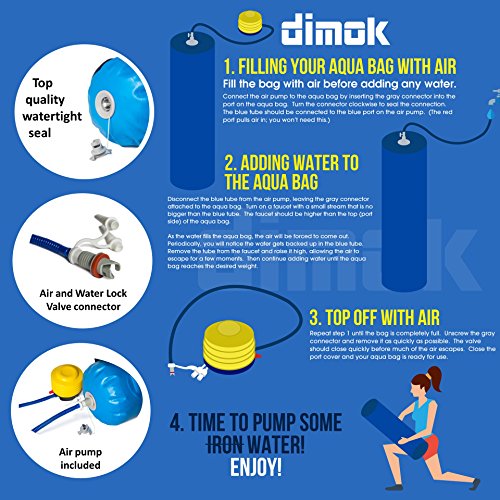 STRONG – Are you ready for a hard full body workout? Weighing only 2 lb when empty, Dimok aqua bags are easy to transport and prepare for exercise. Dimok Workout Sandbags with Water are super tough fitness sandbags, filled with air and water. Valve makes it very easy to fill and empty the bag.