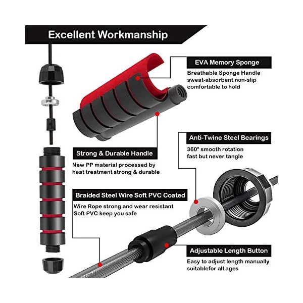 Durable & Tangle-free Jump Ropes – 100% tangle-free, avoiding winding and bending. This jump rope is made of steel wires that are coated with strong PVC material, the surface is smooth and durable, cracking or no breaking. Making it durable even after a long time exercising.