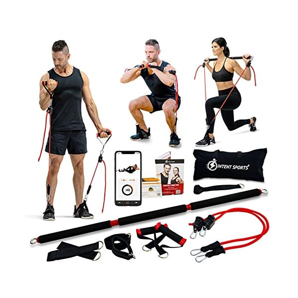 INTENT SPORTS Portable Home Gym – Dynamic Total Body Workout Package with Resistance Bands, Collapsible Bar, Straps…