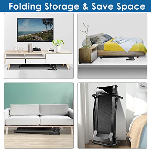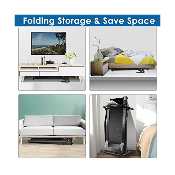 [SAVE SPACE]: Has been assembled and folded, just want to put the screws on. Foldable treadmill for easy storage. Portable treadmill wheels for move.