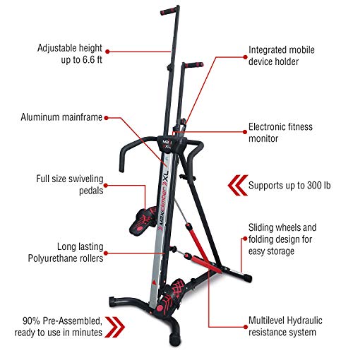 MaxiClimber XL Vertical Climbers – The Original Compact, Mountain Climber, Stair Stepper Exercise Machines – XL-2000 HRS (Hydraulic Resistance System, 12 Level) – Free Coach-led Classes & Fitness App
