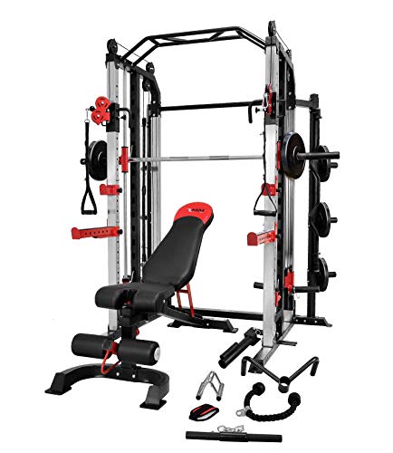 UPGRADED WEIGHT BENCH: Our all-in-one weight bench is a superb choice for full-body workouts at home to shape your abs, back, chest, glutes, arms, hamstrings, and core. Combines the features of a glute bridge, adjustable weight bench, abdominal board, and preacher curl. Includes two exercise bands for resistance training.