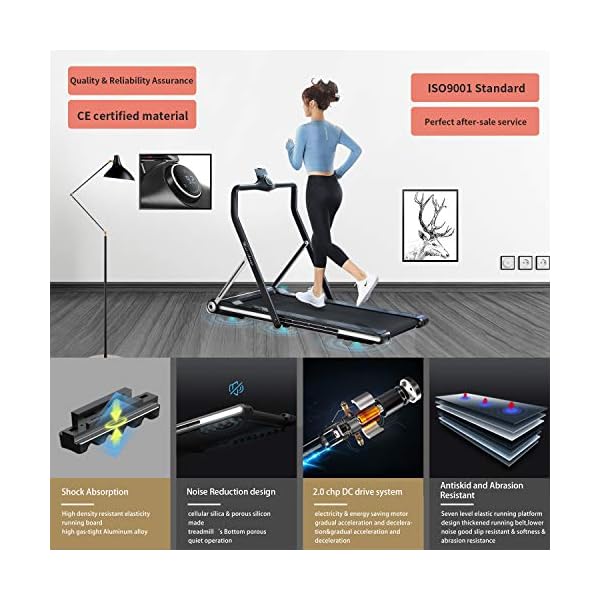 5. 【3 kinds Easy operate way,Need not Assembly!】:—Excluding for Remote & APP keep an eye on, you’ll manual keep an eye on treadmill! One-home button keep an eye on! Easy& Quick! [wide running belt ]: 50”x18”.[walking speed]: 0.6-3.7MPH [running speed] : 0.6-7.5MPH [meter function]: time, distance, calorie, speed. [standing size]: 61″x 30″ x 43″ [folding size]: 61″x 30″ x8″ [User Capacity:】: 220lb [Warranty]:Main Frame: 10 years; Parts: 1 year; Motor: 2 Years !