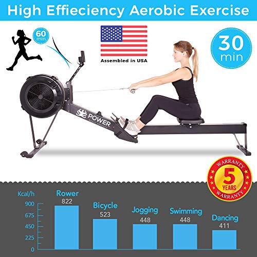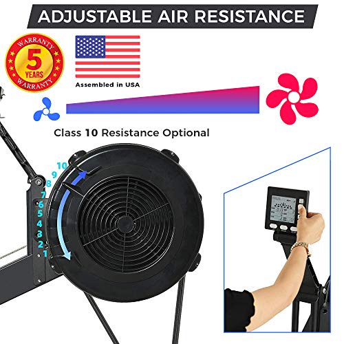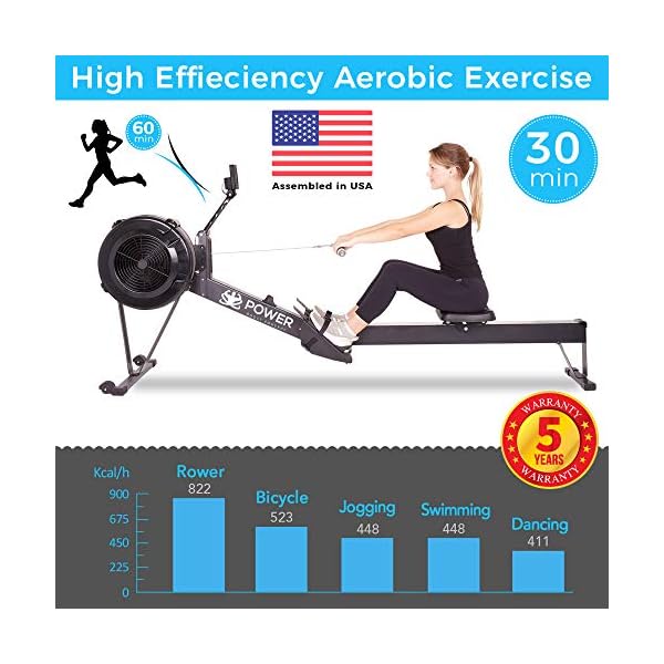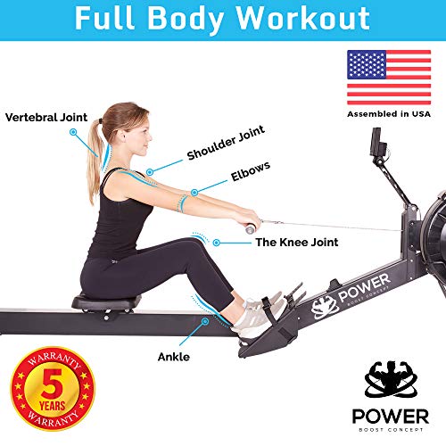 This high-intensity rowing full body workout machine has a built-in LCD to help you monitor the time, count, total count, calories burned per minute, and scan. The air rower is durable, reliable, and very easy to use as a result of its non-slip handles and adjustable foot straps. It has a foldable design that is easy to store at home.