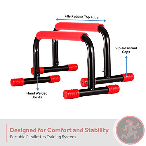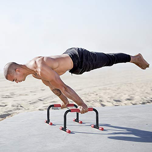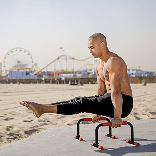 SAFE NON-SKID FEET + FULL FOAM TOP FOR MAX GRIP | Prevent injury and facilitate proper form all the way through your workout with the solid stainless steel design and construction of these heavy duty parallel bars – Non-skid feet ensure additional safety and stability all the way through exercise – plus, a built-in full top tube foam grip enhance protects hands anywhere you grab the bar