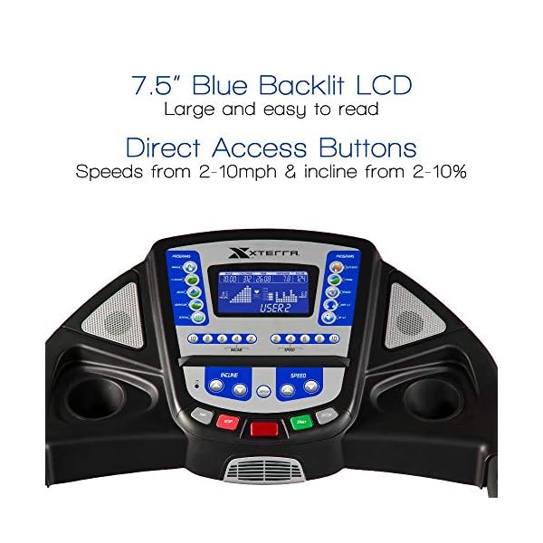 First in Class is the XTERRA TR6. 6 Treadmill! Whether you are preparing for the XTERRA Trail Run Nationals in Utah or taking a leisurely stroll at the largest, most powerful engineered XTERRA Treadmill, the TR6. 6 is your answer. The comfort of walking or running at the cushioned 20” x 60” treadmill deck will will let you achieve your health & fitness goals. State of the art electronics are featured in the easy to read, 7. 5” Bright Blue Backlit LCD display at the side of speed and elevation handlebar controls that will let you easily and safely make adjustments without losing your stride. Remain encouraged to your road to achieving your goals in this high performance and stylish XTERRA treadmill!