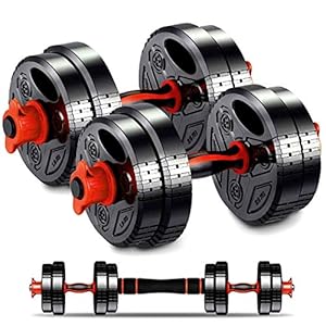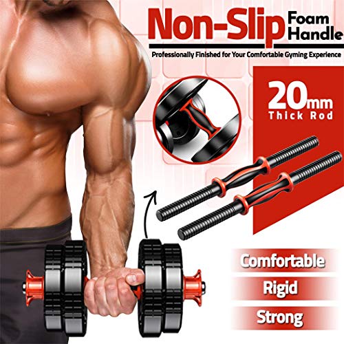 - 40 LBS SET WITH DUMBBELL CONNECTOR COMBO – 2x Handles, 4x Collars, 4x 5-lbs Plates, 4x 3-lbs Plates and 1x Dumbbell Connector