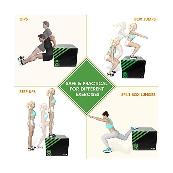 BUILD STRENGTH AND EXPLOSIVE POWER: Perfect for a wide variety of plyometric & HIIT exercises, MMA & CrossFit workouts, 3 different height settings let you keep watch over the difficulty levels for push-ups, step-ups, box-squats, squats, lunges, dips and many more